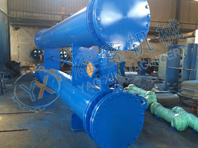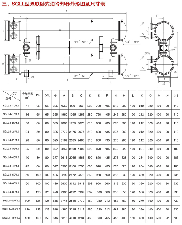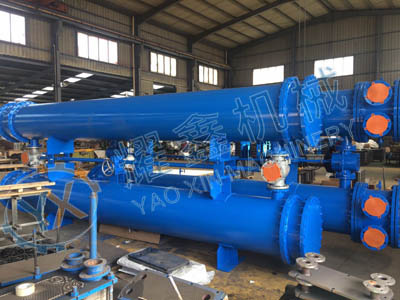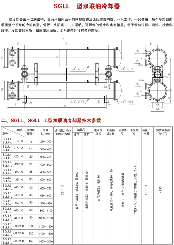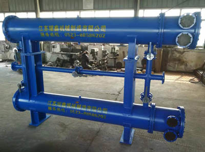 該冷卻器采用雙聯(lián)結(jié)構(gòu),由兩只相同面積的冷油器和三通閥裝置構(gòu)成,一只工作,一只備用,每個(gè)冷卻器能承擔(dān)整個(gè)系統(tǒng)的冷卻負(fù)荷,管板一頭固定,一頭浮動(dòng)、可拆卸的管束和水室箱蓋,便于運(yùn)行過程中清洗、檢查和維修。冷卻器的材質(zhì),根據(jù)使用場所、水系統(tǒng)條件可有多種選擇。